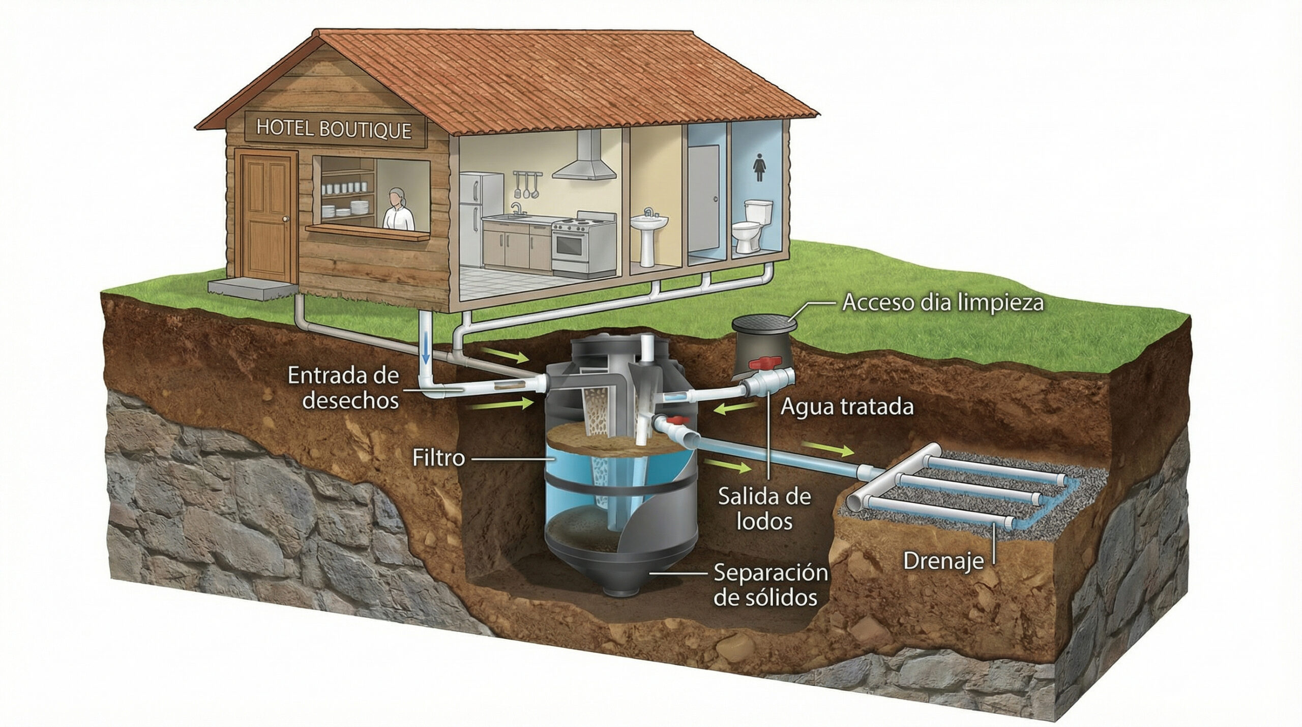 - Alternativa superior a la fosa séptica: Ofrece un tratamiento más limpio, controlado y eficiente, sin los problemas de olores, obstrucciones o contaminación de las fosas tradicionales.